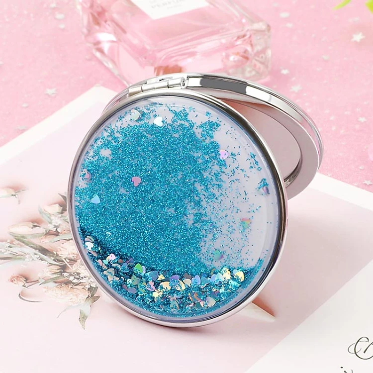 Gương Mini Tròn Gấp Gọn 2 Mặt Rắc Kim Tuyến ( màu ngẫu nhiên)