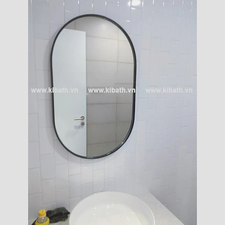 Gương Soi Kibath Khung Nhôm Hình Bầu Dục, KB-142