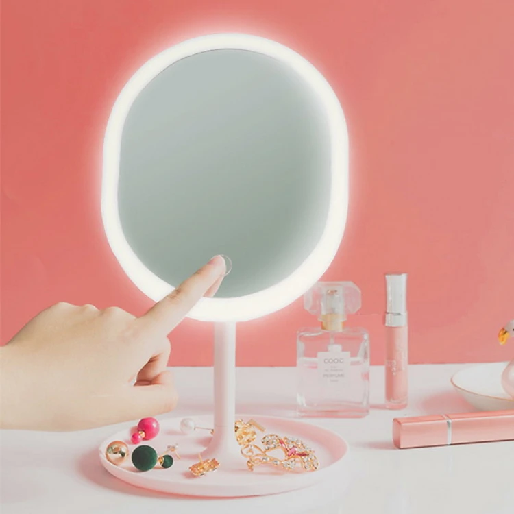 Gương trang điểm có đèn Led cảm ứng cao cấp V.2, dụng cụ hỗ trợ trang điểm tiện lợi cao cấp - Màu hồng