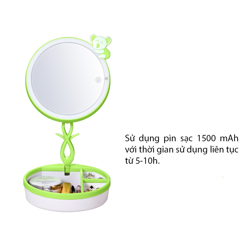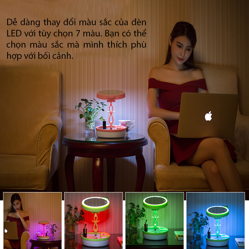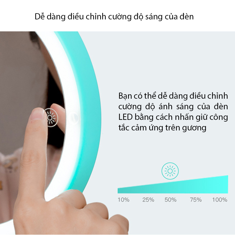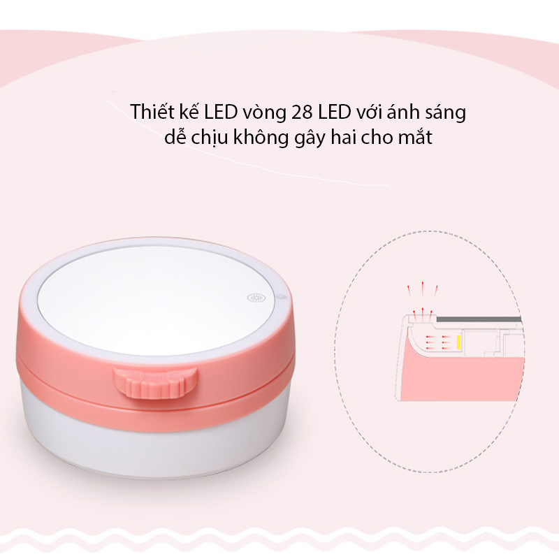 Với thiết kế đèn LED vòng, giúp bạn thấy rõ từng nét trên khuôn mặt trong điều thiếu ánh sáng từ đó trang điểm dễ dàng hơn ngay cả khi điều kiện ngoại cảnh không cho phép.