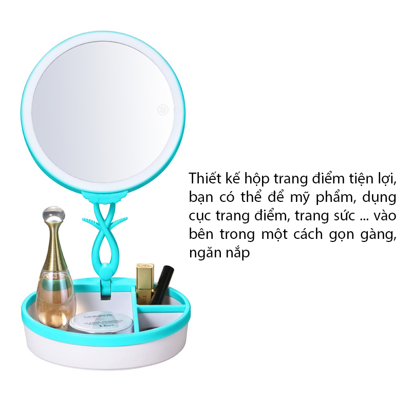 Chiếc gương cũng được tích hợp hộp trang điểm giúp bạn mang theo những vật nhỏ gọn như mỹ phẩm, dụng cụ trang điểm hay trang sức.