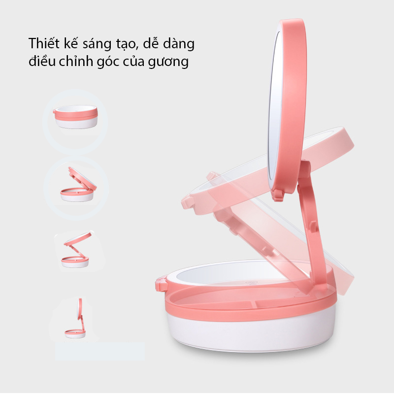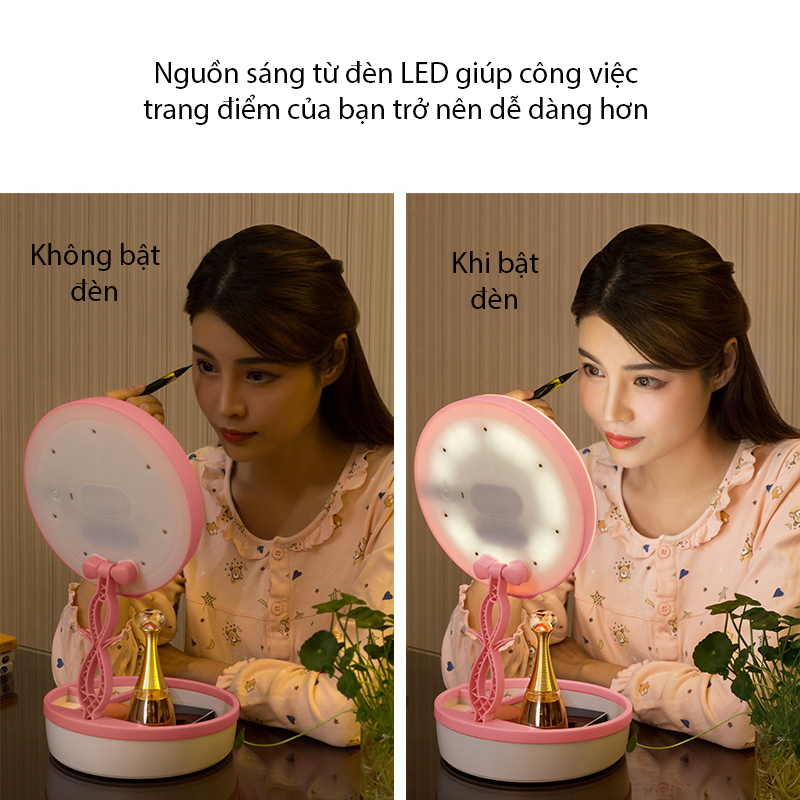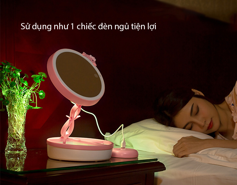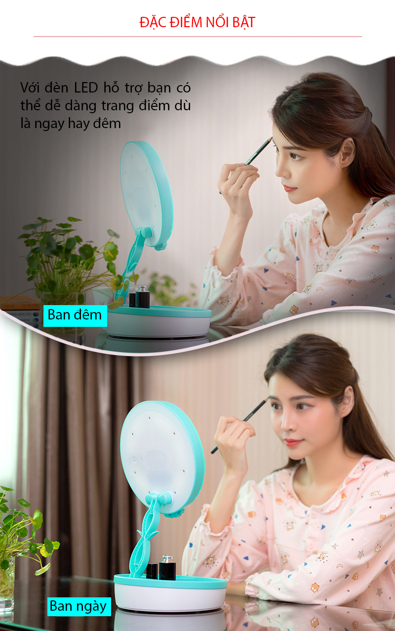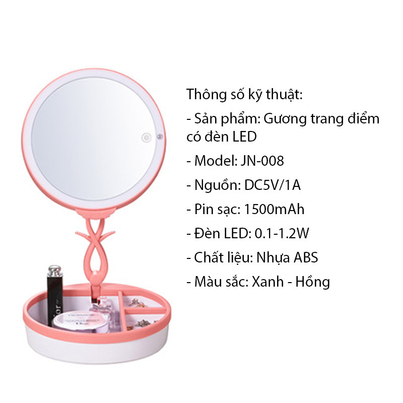 Gương trang điểm JN-008 thiết kế nhỏ gọn, tính năng đa dụng vừa làm đèn ngủ vừa làm gương trang điểm.