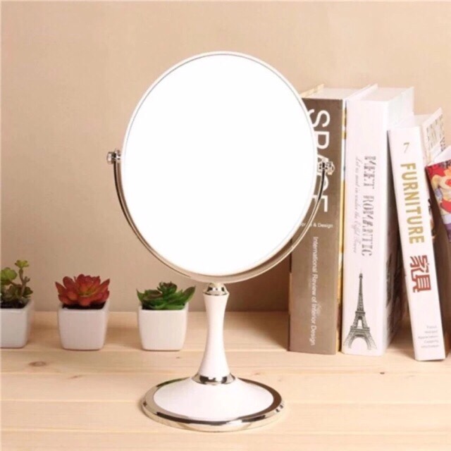 Mặt khác, Gương trang điểm 2 mặt lại có hình dáng vô cùng sang trọng, thiết kế tinh tế, màu sắc trắng ánh kim thời trang. Vừa đẹp vừa tiện lợi, Gương xứng đáng có mặt trên bàn trang điểm của bất kì người phụ nữ nào.