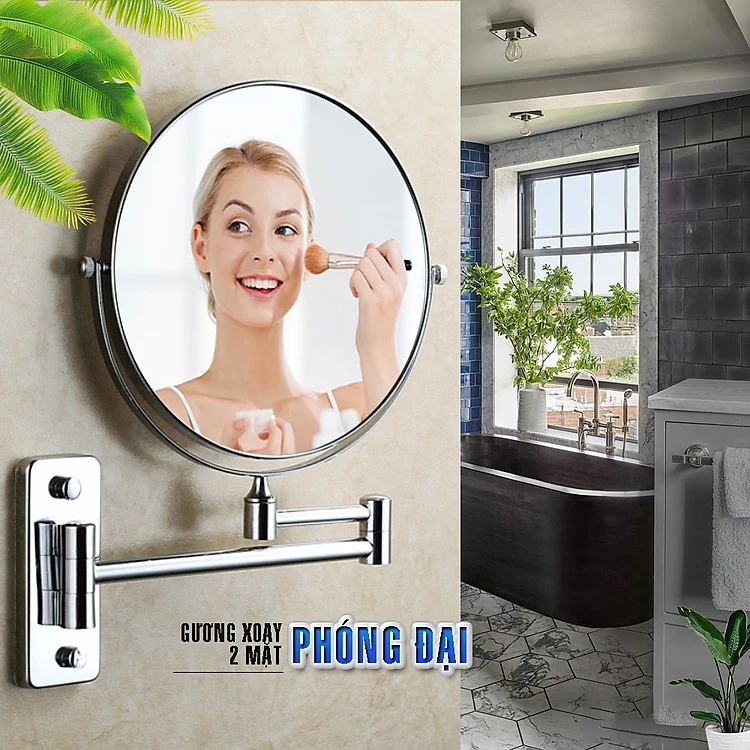 Gương trang điểm phóng đại 3 lần, xoay 360 độ, 2 mặt siêu nét, treo tường phòng tắm, phòng ngủ, Khách sạn, resort, Inox SUS 304, Size 15cm, 18cm, 20cm, Minh House
