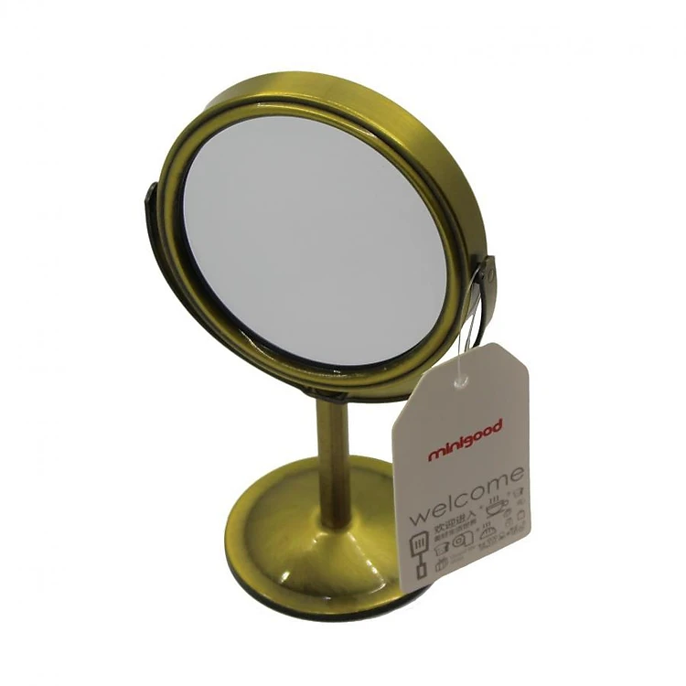 - Gương trang điểm tròn màu đồng xoay 360 độ mini để bàn 2 mặt Minigood Hàn Quốc lại có hình dáng vô cùng sang trọng, thiết kế tinh tế, màu sắc ánh vàng đồng cổ điển tinh tế và sang trọng. Vừa đẹp vừa tiện lợi, gương xứng đáng có mặt trên bàn trang điểm của bất kì người phụ nữ nào.