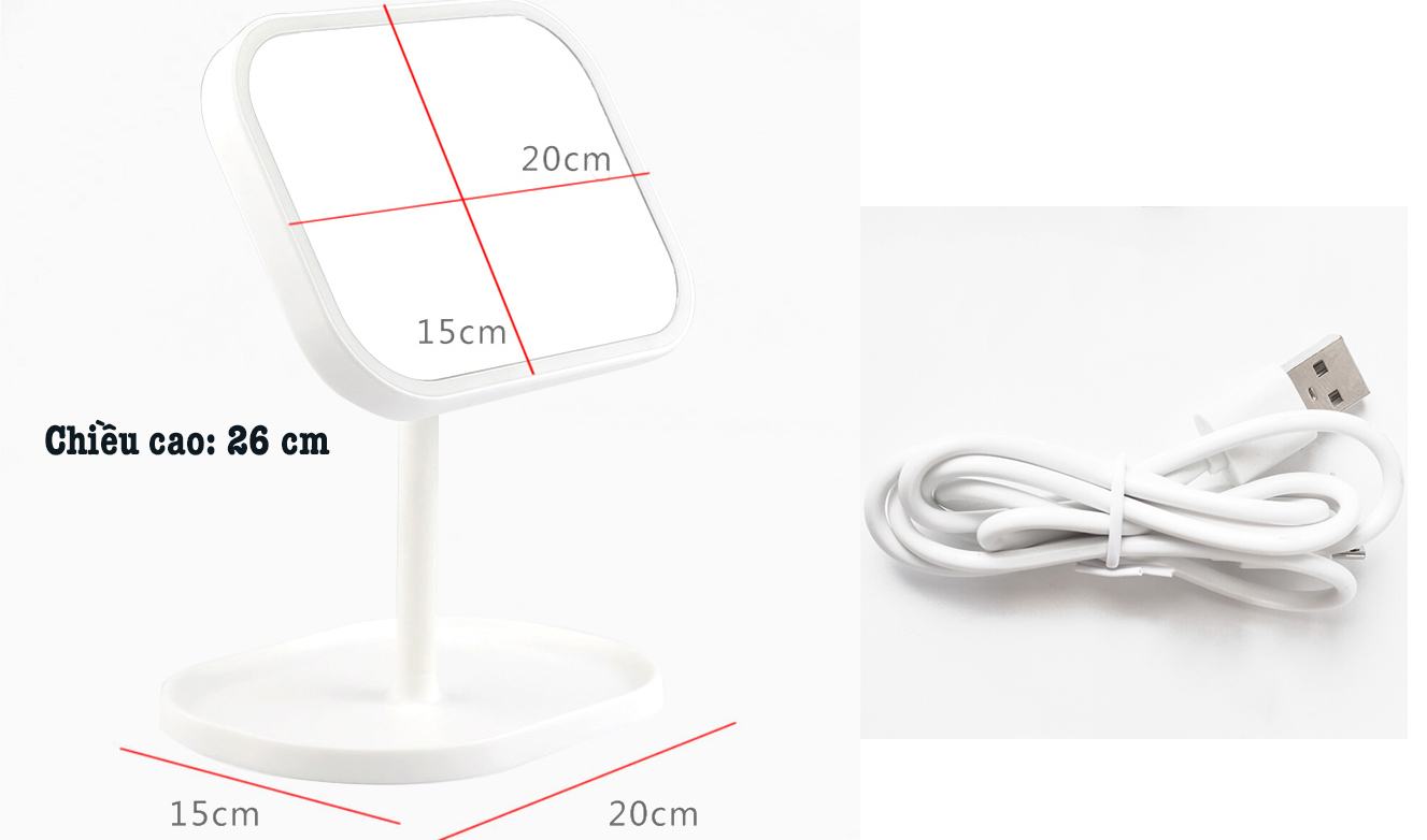 - Kích thước của gương rất phù hợp để bàn làm việc hoặc bàn trang điểm, lòng đế gương khá rộng và trũng giúp bạn có thể để đồ trang điểm, trang sức, đồng hồ,