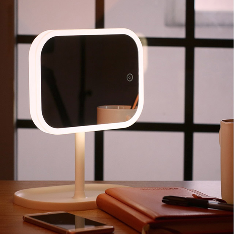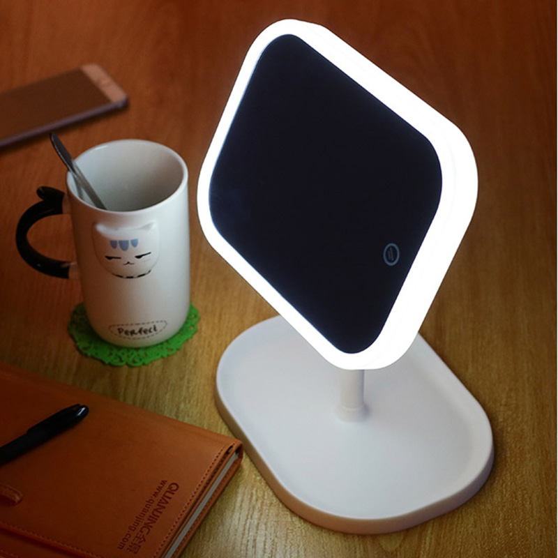 - Gương trang điểm Vanity để bàn có đèn LED có thể chiếu sáng trong bóng tối nhờ được gắn đèn LED, giúp bạn thấy rõ từng nét trên khuôn mặt trong điều kiện tối tăm nhất, từ đó trang điểm dễ dàng hơn ngay cả khi điều kiện ngoại cảnh không cho phép.