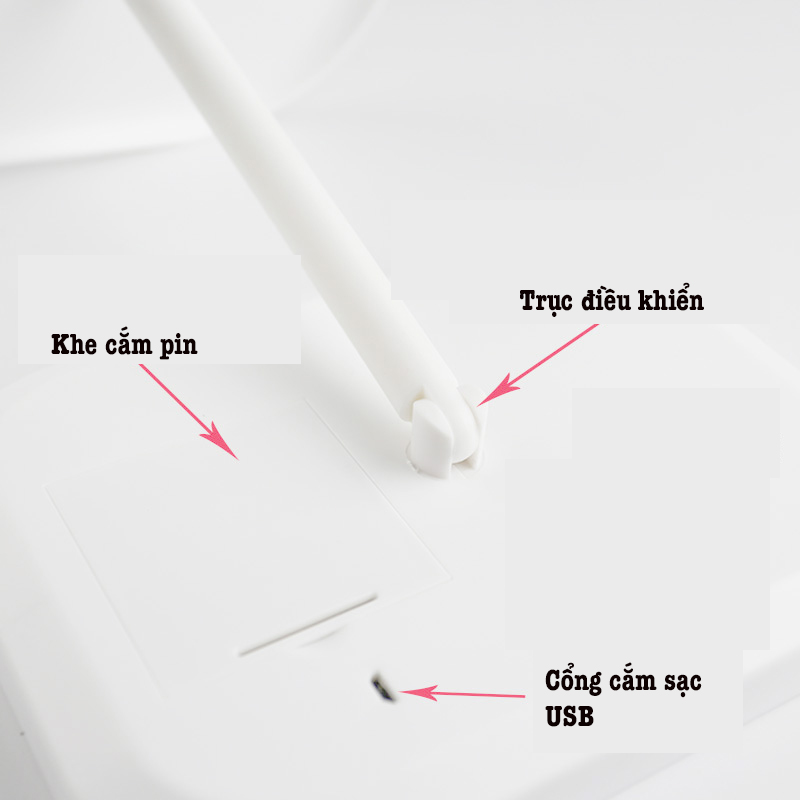 - Sau khi lắp chân đế, gương, bạn cắm pin sạch hoặc cổng sạc USB
