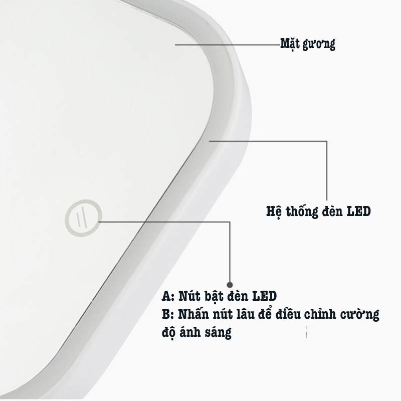 - Nhấn nút điều khiển để bật đèn LED lên, giữ nút trong 3 giây. Nút điều khiển sẽ giúp bạn điều chỉnh được độ sáng của gương giúp bạn dễ dàng soi gương.