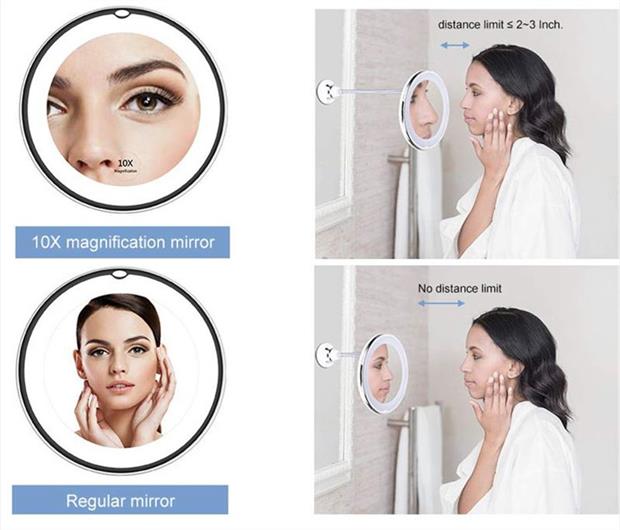 Với thiết kế độc đáo của riêng mình, có khả năng phóng đại hình ảnh lên hơn 10 lần so với mặt gương thông thường, mọi chi tiết trên khuôn mặt trở nên rõ ràng giúp mình tự tin trang điểm mà không cần vươn người vào sát gương rón rén vẽ từng nét trên khuôn mặt như trước.