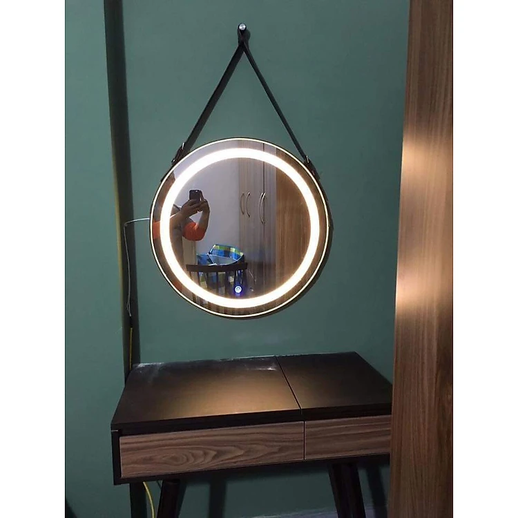 Gương Tròn Đèn Led Cảm ứng công nghệ thông minh kết hợp với viền da siêu bền đường kính 50