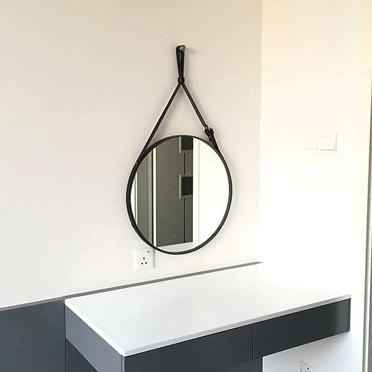- Gương soi treo tường bằng dây da là sản phẩm trang trí nội thất hiện đại là phụ kiện trang trí phòng tắm, phòng ngủ, bàn trang điểm, tường cầu thang, phòng khách mang phong cách hiện đại và trẻ trung rất được ưa chuộng ngày nay. - Gương soi treo tường bằng dây da là sản phẩm đang được nhiều khách hàng yêu thích. Được kiến trúc sư thiết kế nội thất sử dụng thường xuyên vào thiết kế của mình. Chiếc gương tròn tạo cảm giác thoải mái không góc cạnh tạo điểm nhấn cho bức tường đơn điệu trở nên ấn tượng hơn.