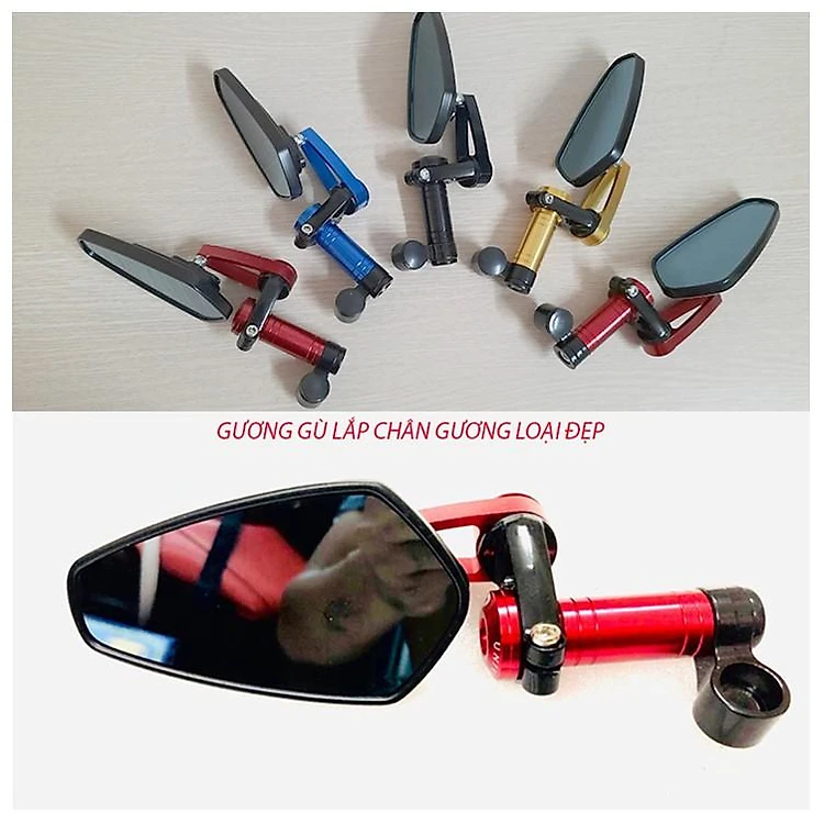 - Gương chiếu hậu xe máy thời trang có cấu trúc gần giống gương gù nhưng được thay đổi để bắt vào chân gương zin của xe. Vật liệu chủ yếu là nhôm CNC bền chắc chắn, mặt gương kính xanh thời trang