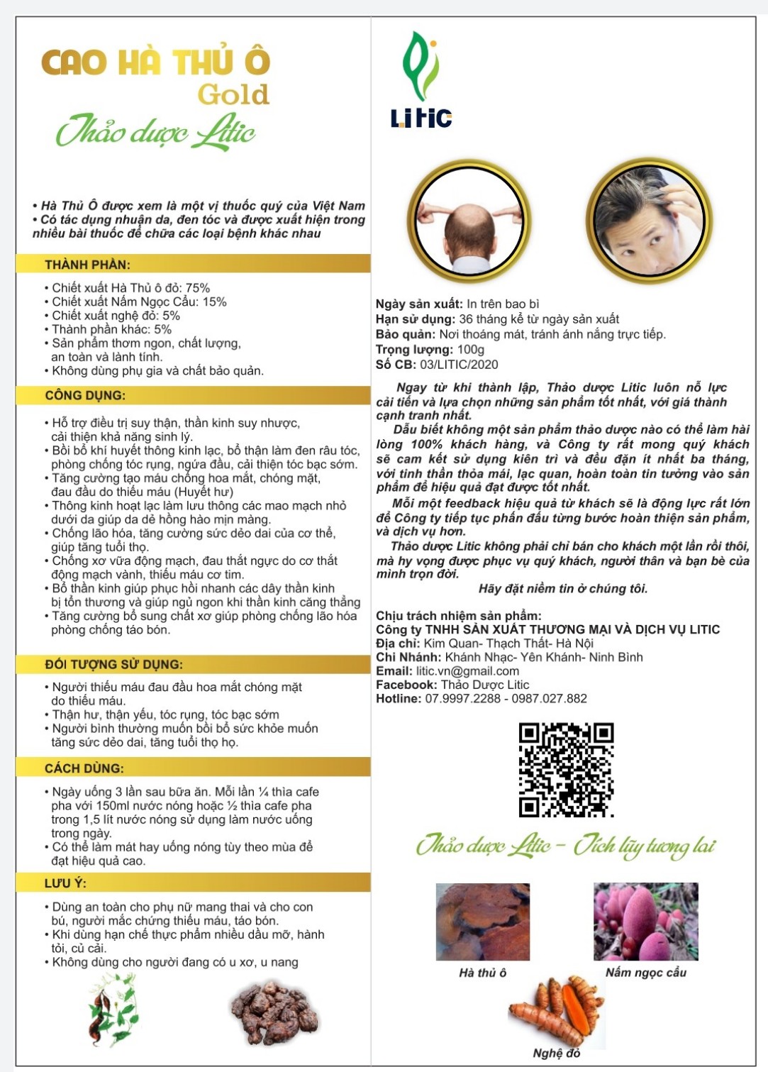 Cao hà thủ ô Gold LITIC 100g hạn chế bạc tóc, rụng tóc sớm, hói đầu, xấu máu LCHTO