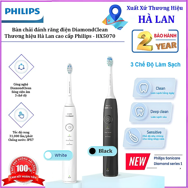 HÀNG CHÍNH HÃNG - Bàn chải đánh răng điện Philips DiamondClean. Thương hiệu Hà Lan cao cấp Philips - HX5070