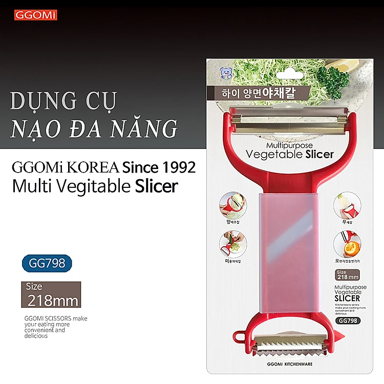 [HÀNG CHÍNH HÃNG] Bào, nạo đa năng GGOMi Hàn Quốc GG798 dài 22cm, rộng 12cm, tay cầm ABS, lưỡi bằng thép không gỉ