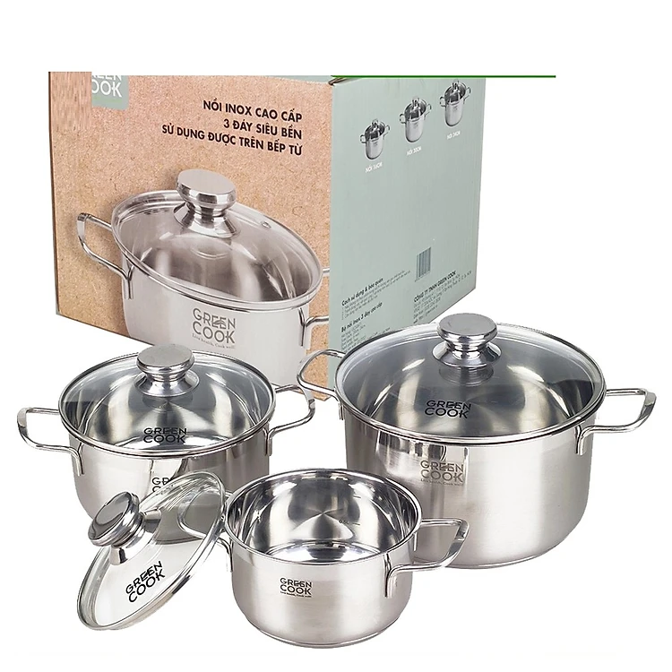 - Tên sản phẩm: Bộ nồi inox 3 đáy Greencook GCS06-T1