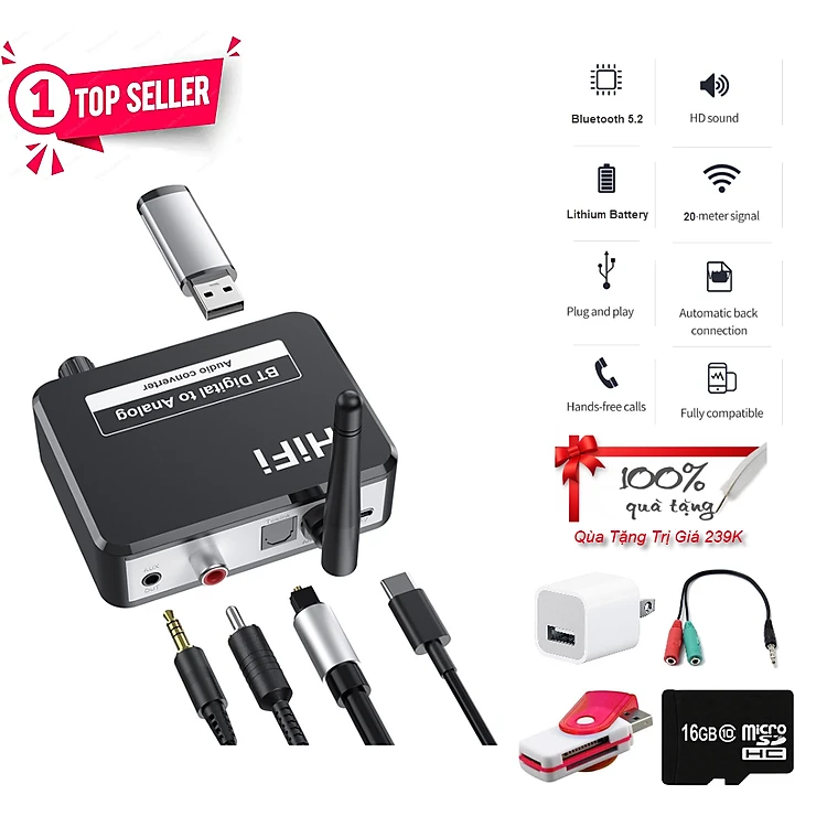 Hàng Chính Hãng - Bộ Chuyển Đổi Âm Thanh DAC B35S HIFI Bluetooth, Chuyển Đổi Analog Mượt Mà, Hỗ Trợ Đa Dạng Kết Nối Optical Coaxial AUX USB Bluetooth 5.1, Phạm Vi Kết Nối 20m, Âm Thanh Vượt Trội, TỰ Động Kết Nối Dễ Dàng, Remote - ROGTZ