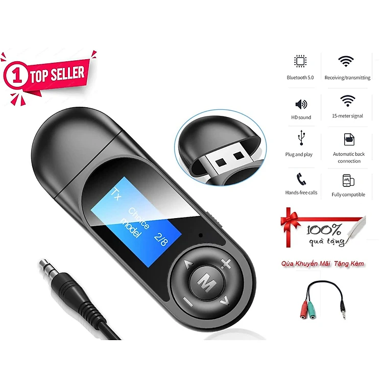 Hàng Chính Hãng - Bộ Thu Phát Bluetooth T13-JA Bluetooth 5.0 Phạm Vi Kết Nối 15m Màn Hình LCD Chế Độ Chuyển Đổi Linh Hoạt RX TX Plug&Play Không Cần Cài Đặt AUX 3.5mm USB Kết Nối Đa Dạng Điện Thoại Loa TV PC Đầu Đĩa Tai Nghe Nhỏ Gọn - ROGTZ