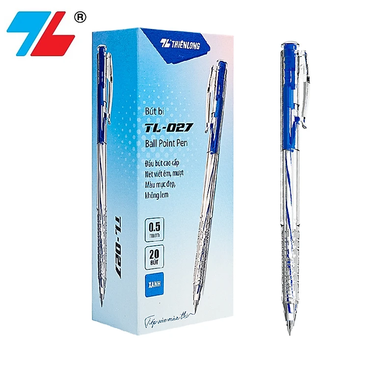 [Hàng chính hãng] Hộp 20 cây bút bi Thiên Long TL-027 / TL027 nét nhỏ ngòi 0.5mm ruột BPR-06 thay