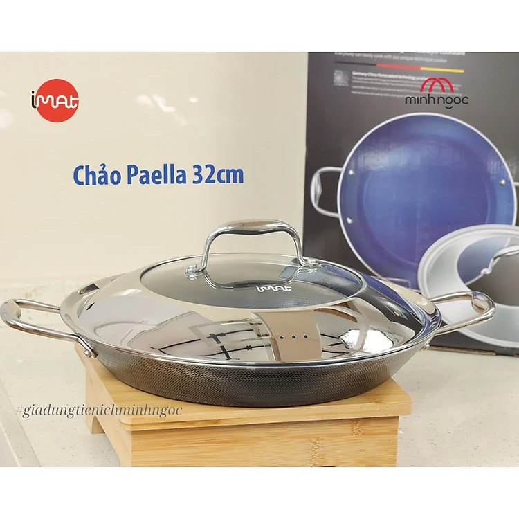[Hàng chính hãng-iMat] Chảo đa năng iMat Hybrid Paella size đại 32cm,chống dính Ceramic lòng xanh
