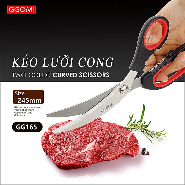 [HÀNG CHÍNH HÃNG]Kéo nhà bếp lưỡi cong dài 24.5cm, lưỡi kéo dài 10.2cm bằng thép không gỉ của GGOMi Hàn Quốc GG165