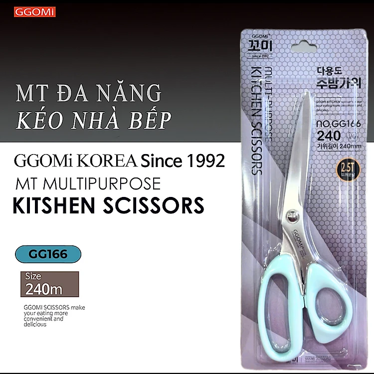 [HÀNG CHÍNH HÃNG]Kéo nhà bếp tiện lợi GGOMi Hàn Quốc GG166 màu sắc pastel dài 25cm,độ dài lưỡi 10.3cm bằng thép không gỉ