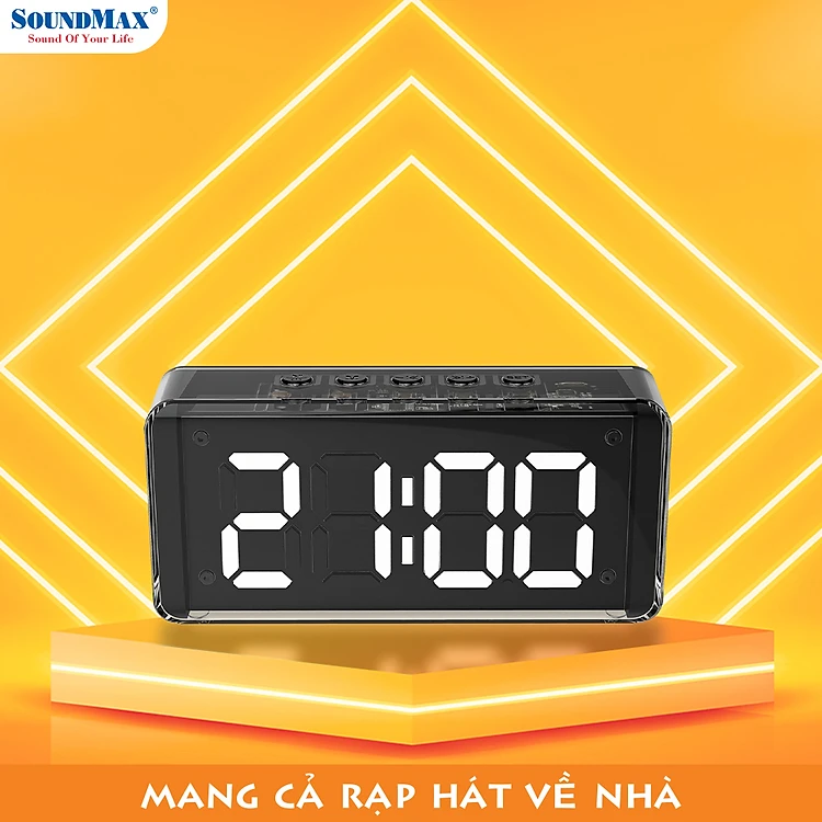 [Hàng Chính Hãng] Loa bluetooth kiêm đồng hồ báo thức SoundMax AT-100 | AT100 với thiết kế hiện đại - Loa nghe nhạc bluetooth - Đồng hồ điện tử trang trí bàn làm việc