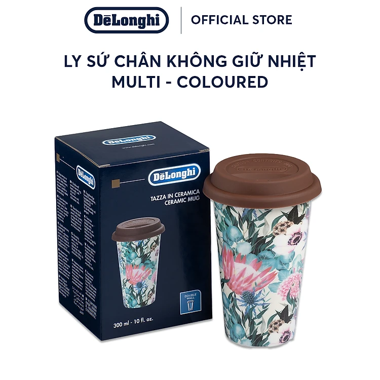 [Hàng chính hãng] Ly sứ chân không giữ nhiệt DeLonghi (Blue Flower/ Thermal Mug/ Coffee Shop/ Multi-coloured)