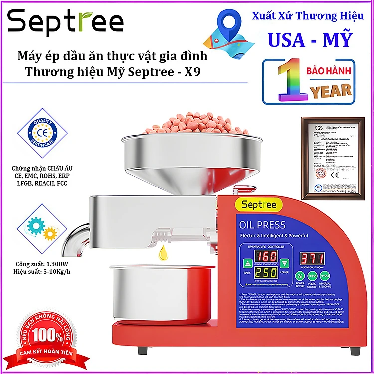 HÀNG CHÍNH HÃNG - Máy ép dầu ăn thực vật, dùng trong gia đình. Thương hiệu Mỹ cao cấp Septree - X9