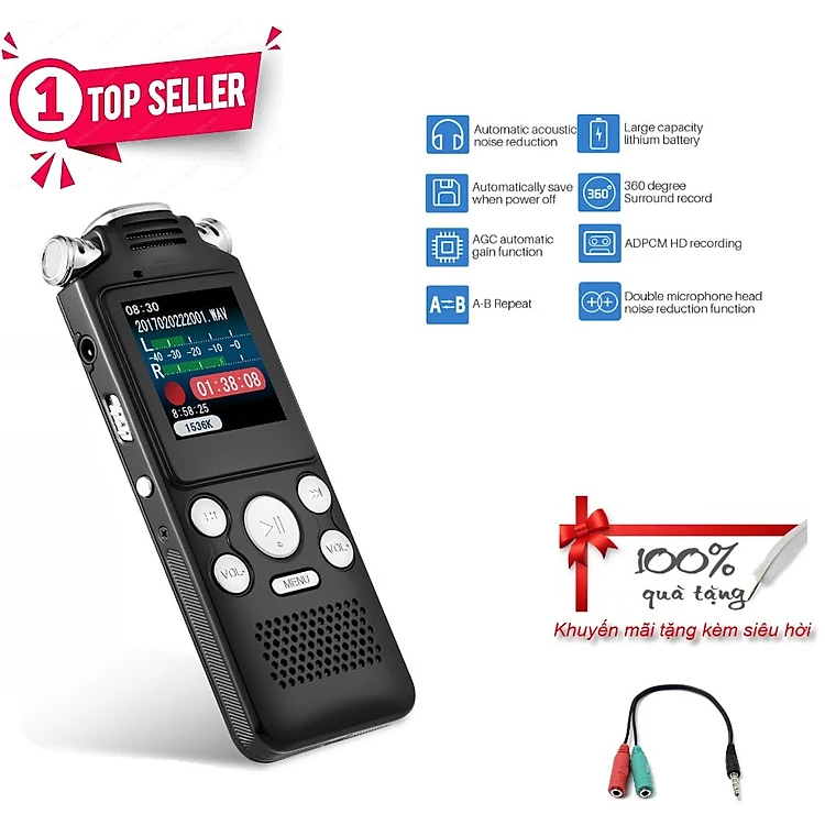 Hàng Chính Hãng - Máy Ghi Âm Kỹ Thuật Số 8822JA Bộ Nhớ 32GB Màn LCD Tốc Độ Ghi Âm 1536Kbps 3 Micro Thu Âm Siêu Nhạy Khoảng Cách Thu 50m Tự Động Ghi Âm Pin Trâu 15 Giờ Hỗ Trợ Đa Định Dạng MP3, WAV, APE, FLAC, WMA, ACC-LC, ACELP Kết Nối Đơn Giản - ROGTZ