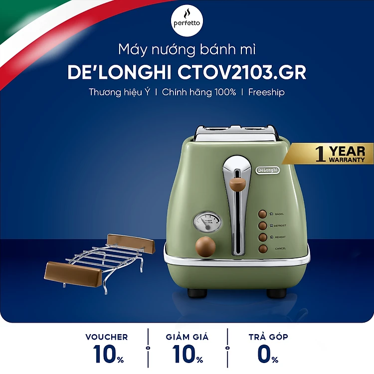 [Hàng chính hãng] Máy nướng bánh mì DeLonghi Icona Vintage CTOV2103 (BG/ GR)