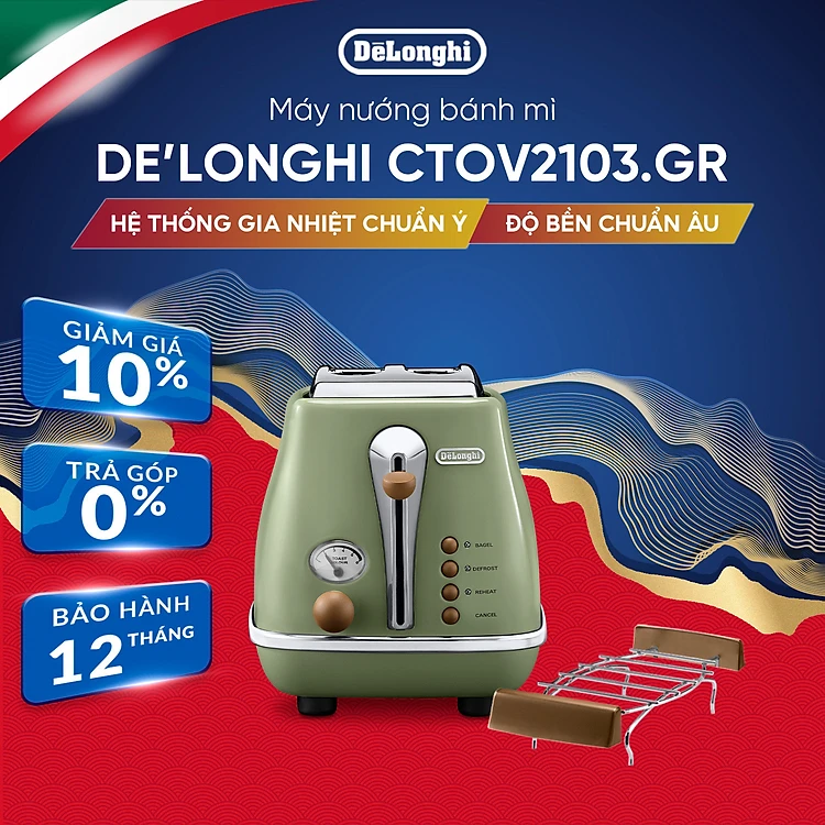 [Hàng chính hãng] Máy nướng bánh mì DeLonghi Icona Vintage CTOV2103 (BG/ GR)