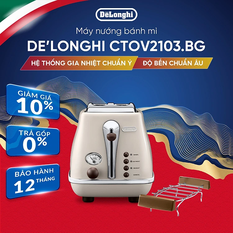 [Hàng chính hãng] Máy nướng bánh mì DeLonghi Icona Vintage CTOV2103 (BG/ GR)