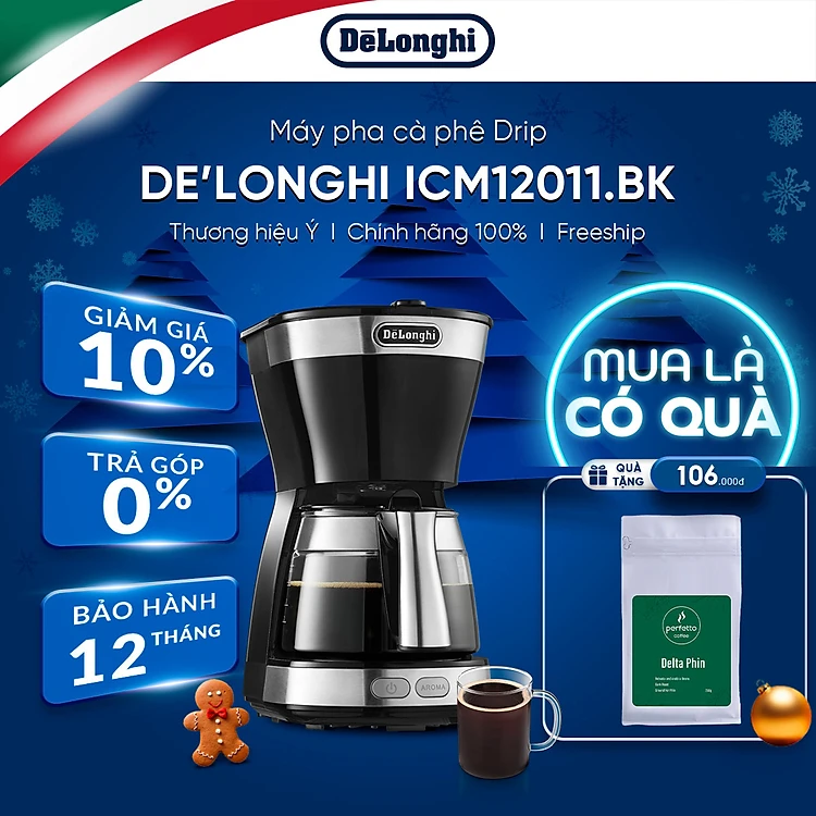 [Hàng chính hãng] Máy pha cà phê drip DeLonghi ICM12011.BK