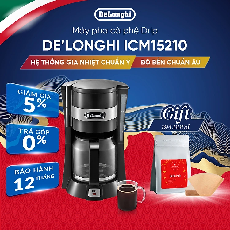[Hàng chính hãng] Máy pha cà phê Drip DeLonghi ICM15210.1
