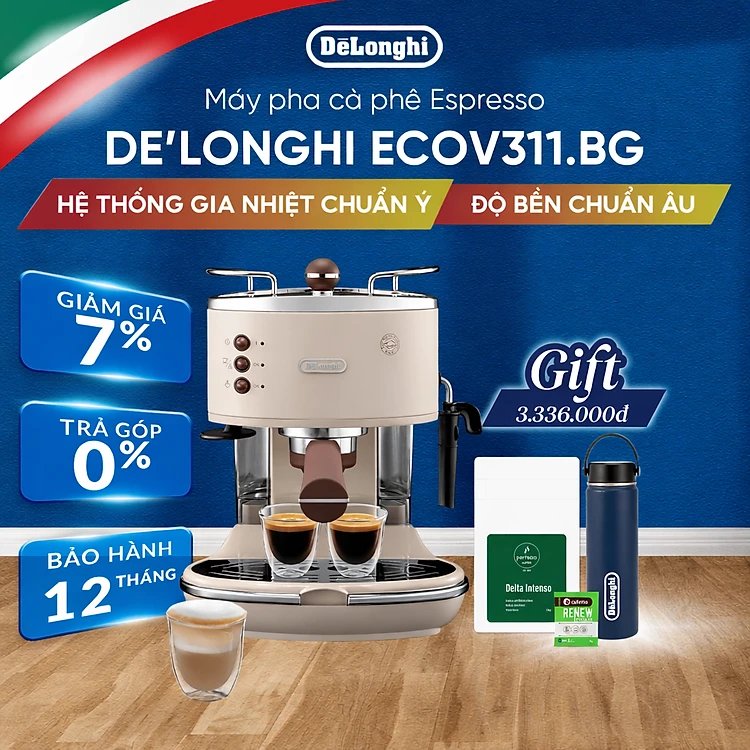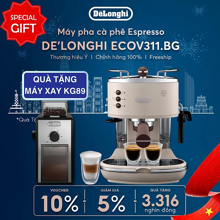 [Hàng chính hãng] Máy pha cà phê espresso DeLonghi Icona Vintage ECOV311 (BG/GR)
