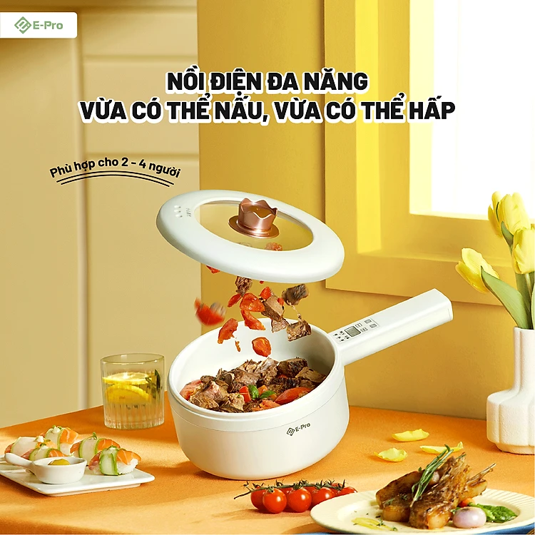 [Hàng chính hãng] Nồi điện đa năng E-pro - Tay cầm cách nhiệt - Nắp trong suốt - Chống dính - Dung tích 3L - 900W