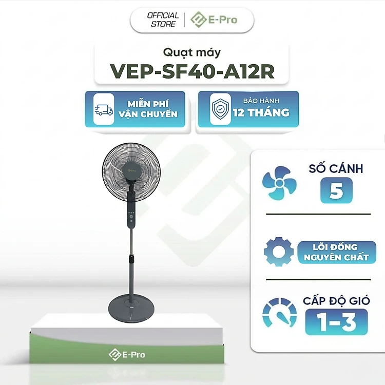 Quạt đứng VEP-SF40-A12R - 3 chế độ gió - Hẹn giờ 7 tiếng - Điều khiển từ xa