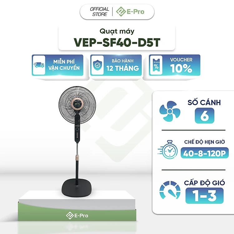 [Hàng chính hãng] Quạt đứng VEP-SF40-D5T - 3 chế độ gió linh hoạt - kết cấu 6 cánh thổi mát diện rộng