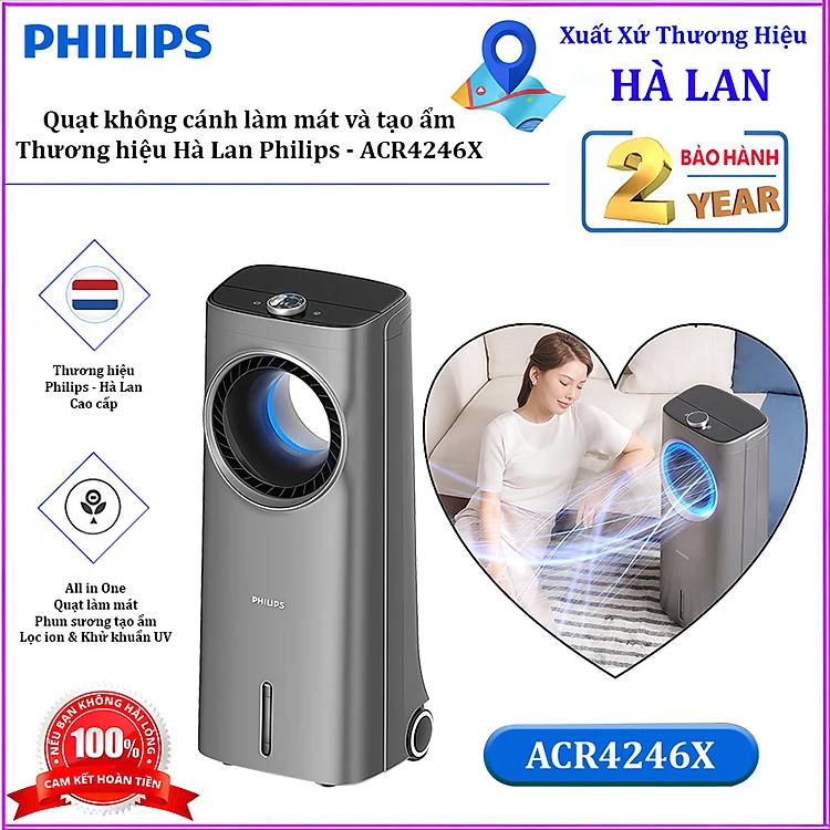 HÀNG CHÍNH HÃNG - Quạt không cánh làm mát, phun sương tạo ẩm. Kiêm lọc không khí ion âm và khử khuẩn UV, Serial 4000. Thương hiệu Hà Lan cao cấp Philips - ACR4246X