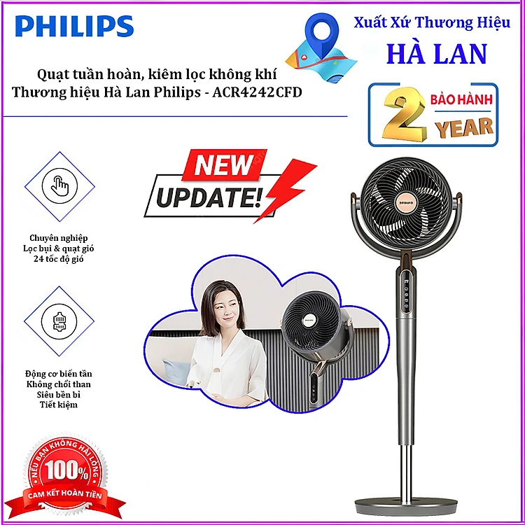 HÀNG CHÍNH HÃNG - Quạt tuần hoàn kiêm lọc không khí Serial 4000, động cơ biến tần cao cấp. Thương hiệu Hà Lan nổi tiếng Philips - ACR4242CFD
