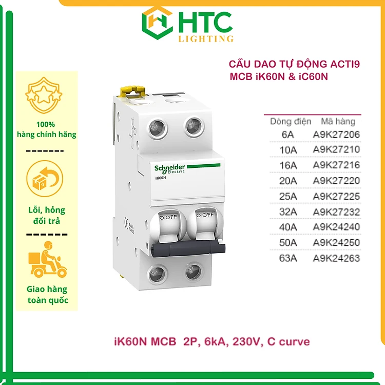 [Hàng chính hãng Schneider Electric] Cầu dao / Aptomat tự động MCB Acti9 iC60N 2P 6kA 230V