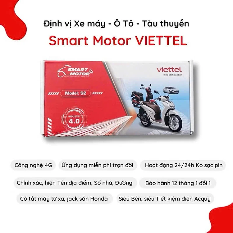 [HÀNG CHÍNH HÃNG] SMART MOTOR S1 và S2 (4G-2025) VIETTEL - Định vị, chống trộm Xe máy, Ô TÔ - SX 2025 - Siêu tiết kiệm Acquy