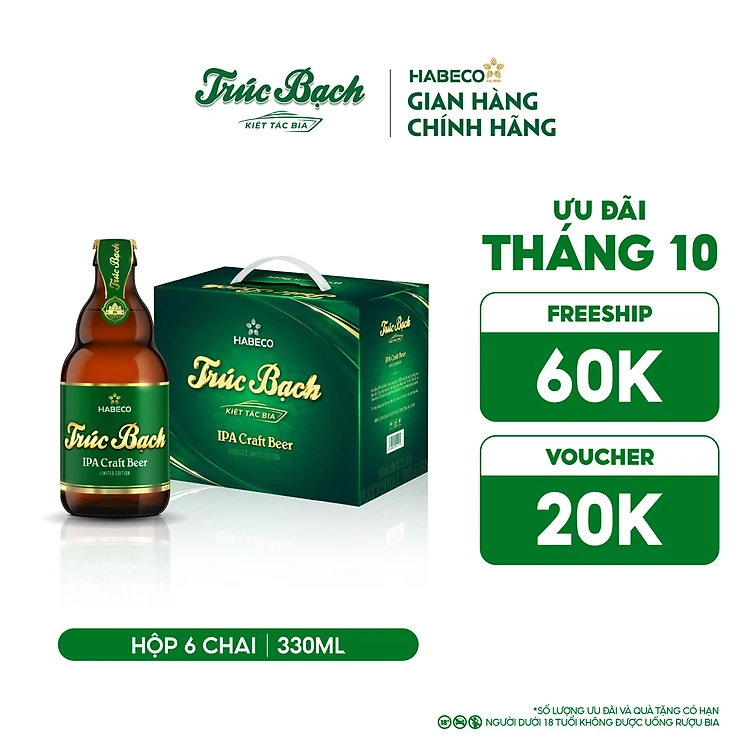 Bia Trúc Bạch IPA Craft - Hộp 6 chai 330ml