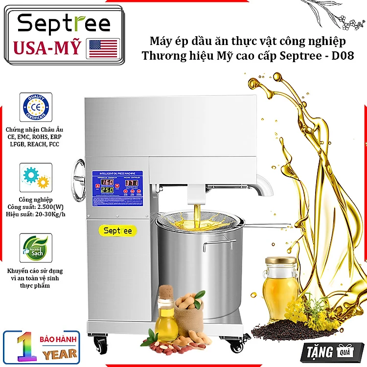 [ Hàng nhập khẩu] Máy ép dầu ăn thực vật công nghiệp, dùng cho hộ kinh doanh, nhà hàng, khách sạn, Thương hiệu Mỹ cao cấp Septree - D08