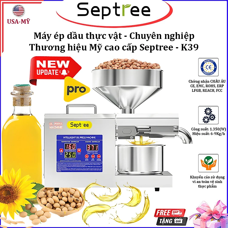 [ HÀNG NHẬP KHẨU] Máy ép dầu thực vật chuyên nghiệp nâng cấp hoàn toàn Septree K39 – Dùng cho gia đình, kinh doanh, nhà hàng, khách sạn