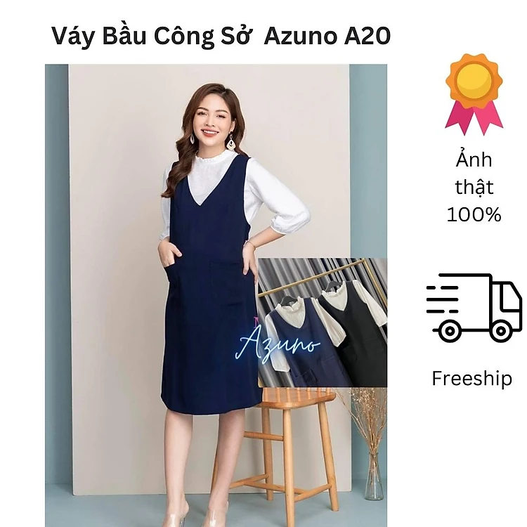 HÀNG THIẾT KẾ - Váy Bầu, Yếm Bầu Cổ Tim Azuno A20 Chất Tuyết Mưa Phối Áo Đũi Cao Cấp