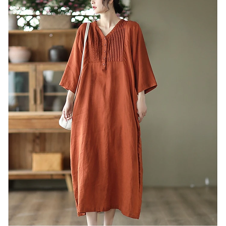 {#HàngMớiVề} Váy Đầm Nữ Thiết Kế Cao Cấp Cổ Xẻ Dáng Suông Tôn Dáng, Đầm Midi Chất Liệu Sang Trọng Da190