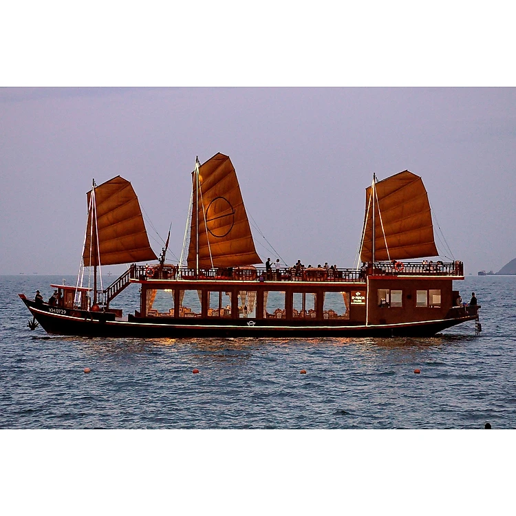 Khi mặt trời chuyển màu, hoàng hôn buông xuống, tàu sẽ di chuyển dọc thành phố biển Nha Trang, du khách sẽ được ngắm cảnh hoàng hôn đẹp nhất trong khi thưởng thức tiệc cocktail, bữa tối tinh tế và nghệ sỹ ghi ta và violon chơi những bản nhạc du dương trong một khung cảnh lãng mạn dưới trời sao, ánh trăng và ánh đèn rực rỡ của thành phố.